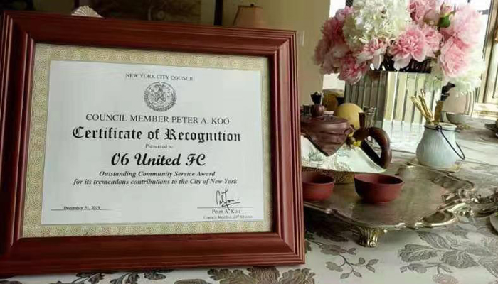 新年伊始。本會榮獲紐約市議會嘉許,於除夕夜頒發「紐約市社區體育事業傑出貢獻獎」,為本會過往積極推動社區華人體育事業的努力予以肯定!本會勿忘初心,未來必定更竭力貢獻本地華人足球體育,不負眾望。